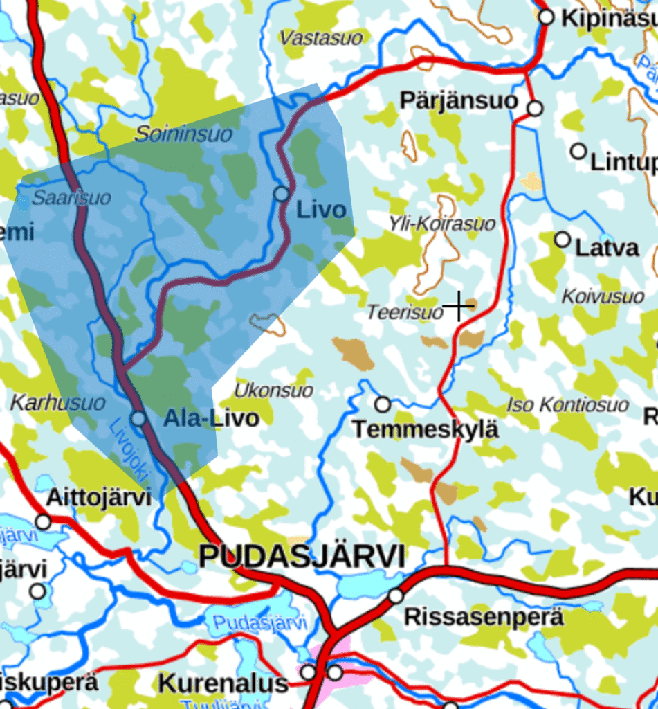 Ranuantien varressa Pudasjärvellä on kaivuutyömaalla katkennut Kairan Kuidun valokuitukaapeli. Katkos vaikuttaa alla olevan kartan mukaisella alueella.